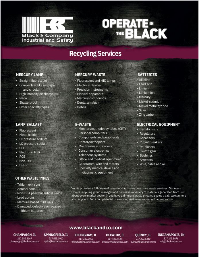 Veolia provides a full range of hazardous and non-hazardous waste services. Our electronics recycling group manages and processes a variety of materials generated from justabout every market sector.